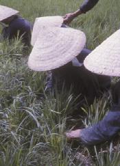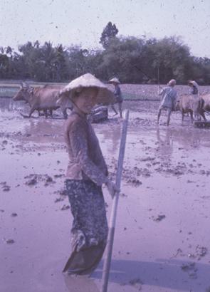 Group of women planting IR-8 rice in An Giang Province near Long Xuyen.