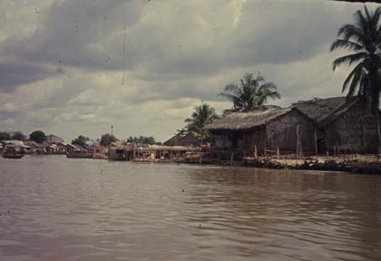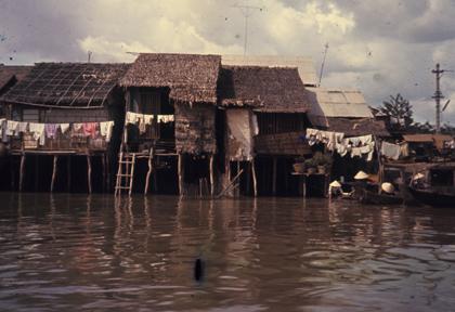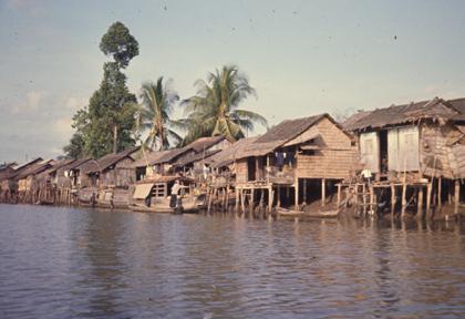 Vietnam Waterways - Areas where flooding often occurs and the houses are built on stilts above the high water marks