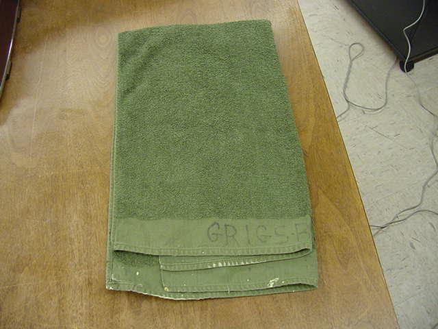 Army issue green cotton towel