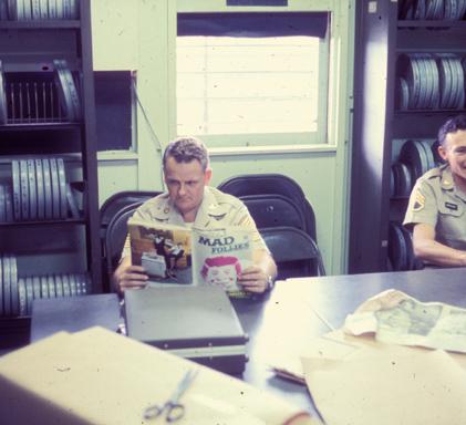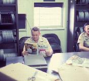 DASPO Office, Fort Shafter, Hawaii, 1968. From left to right: 1st Sgt. Ken Bridgham, SSG Harry Breedlove.