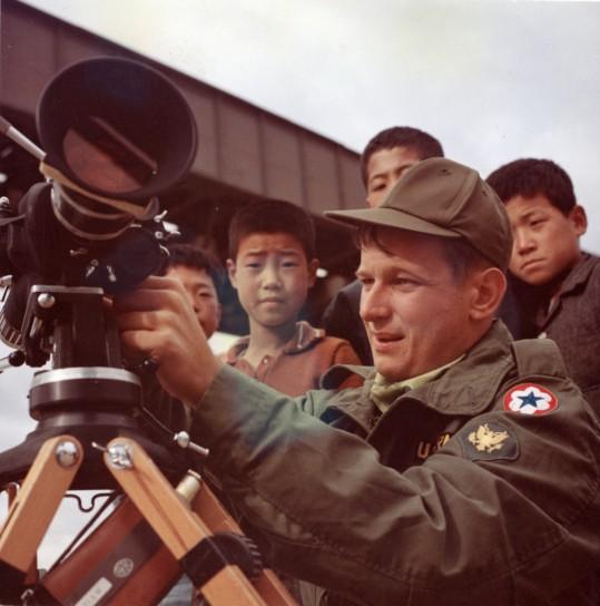 Motion Picture 101 All of these young boys who were paying such intense attention to my lecture on cinematography have since become award winning cameramen. CC 52237 Seoul, Korea OPERATION 'DASPO' SP4 Theodore T. Acheson (Flint, Michigan), cinematographer, DASPO Team A, reloads his motion picture camera under the watchful eyes of some young Korean boys during an assignment on bridges. 24-25 October 1968 Photo by SP4 Thomas Mintier, Jr. US Army Special Photo Detatchment, Pacific Korea 1968 Training future cinematographers