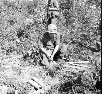 Demolition experts prepare to blow up the entrance to a Viet Cong tunnel. Photo by Robert C. Lafoon US Army Sp Photo Det, Pacific