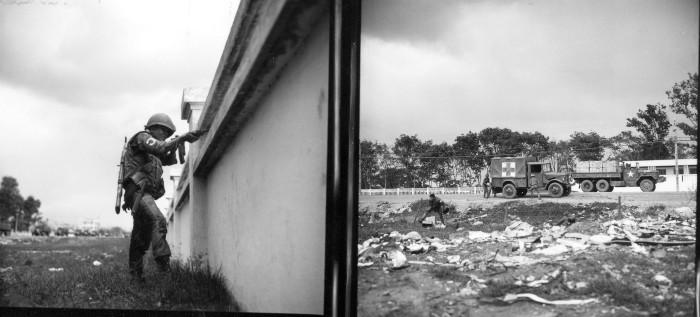6 May 1968 - Photo by SP4 Bryan Grigsby (DASPO) - ARVN medics carry the body of a dead South Vietnamese officer from the French National Cemetery where a firefight was taking place. This action was part of what later became known as the Post-Tet Offensive of the May Offensive of 1968.
