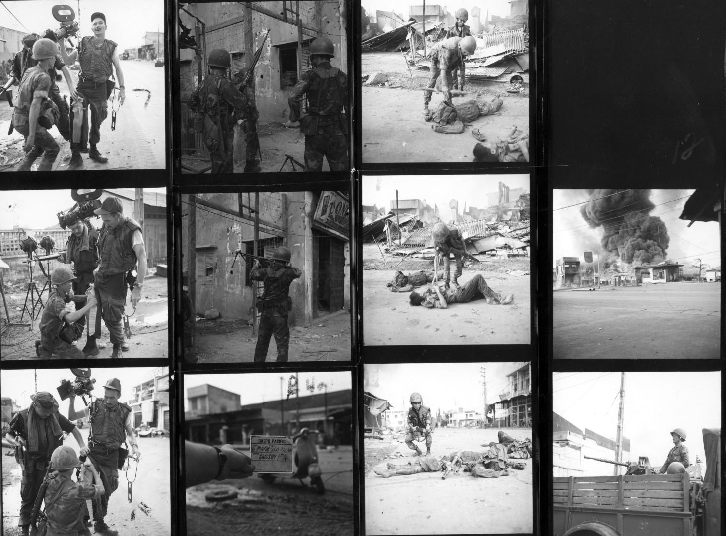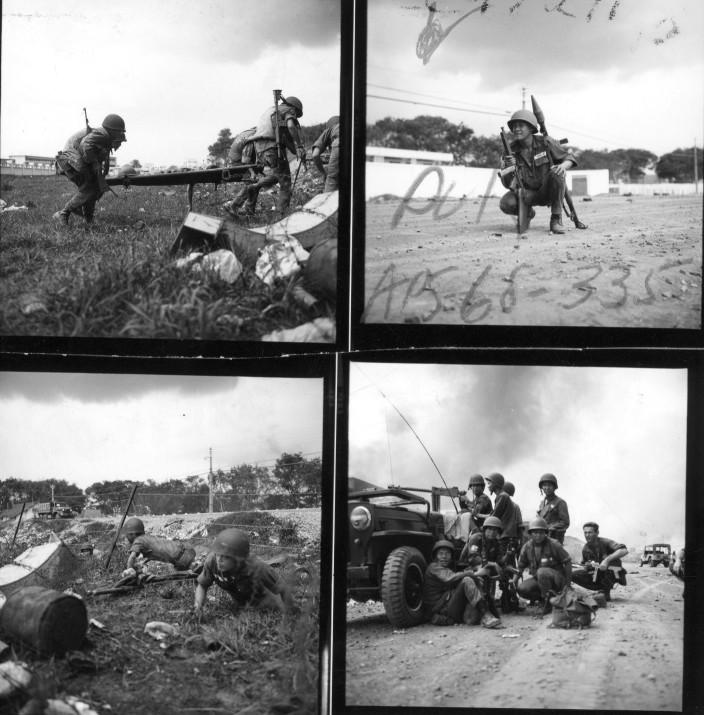 ARVN troops repel NVA/VC attack on Saigon - SP4 Bryan K. Grigsby (Gainesville, Fla.), Audio Specialist, USA Sp Photo Det, Pac, records the action as members of the 38th Ranger Bn, 5th Ranger Grp (ARVN), make a house to house search for VC. 8 May 1968. Photo by SP4 Jacob E. Hawes, USA Sp Photo Det, Pac.