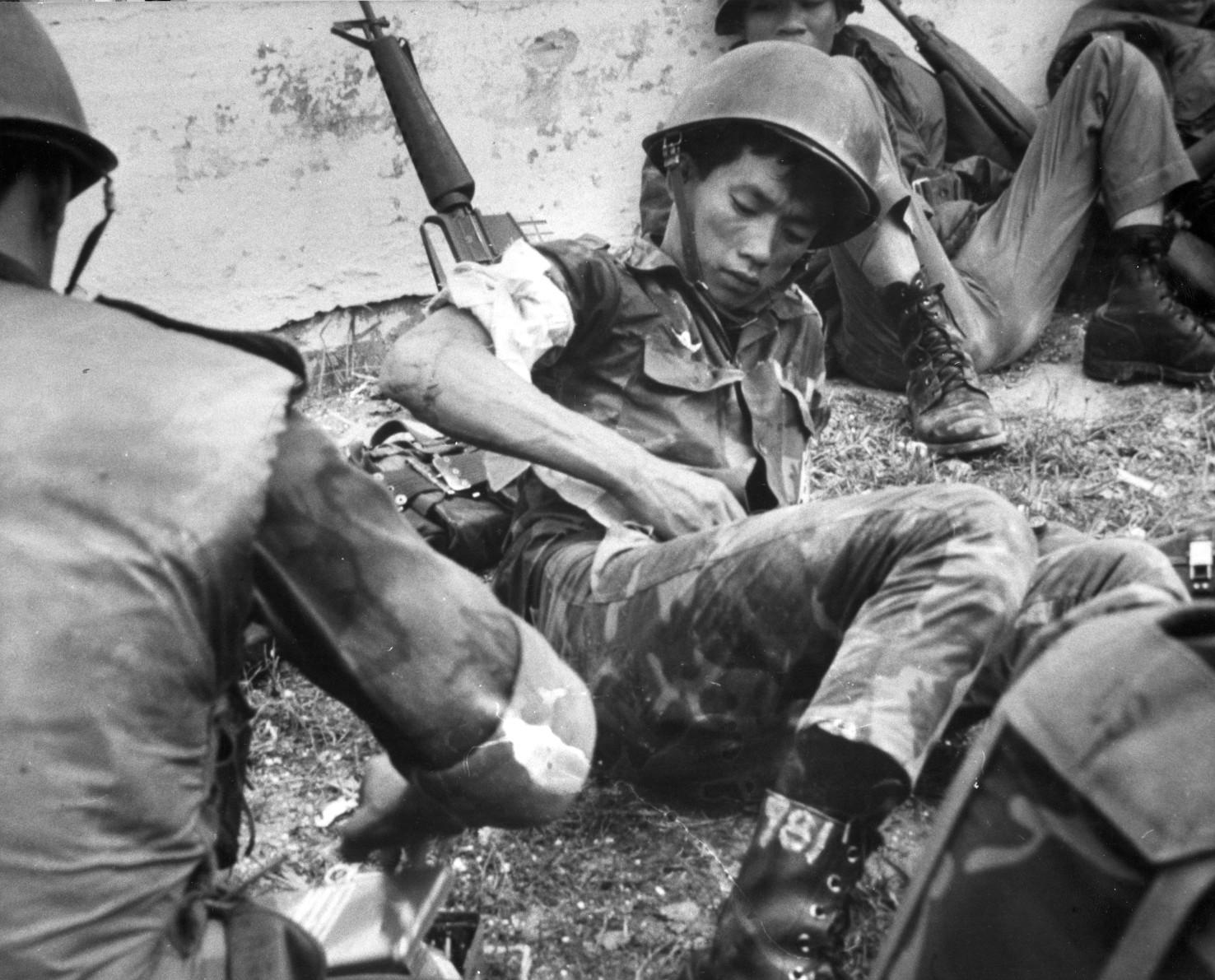 May 6, 1968 Aid Station set up in French National Cemetery for ARVN troopers from 7th Airborne Bn and 1st Airborne Div Photo by Sp4 Bryan Grigsby DASPO