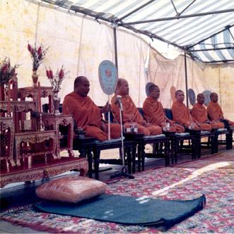 CC 73351 BANGKOK, THAILAND TRANSFER OF PCF BOATS The U.S. Government turned over five PCF 'swift' boats to the Royal Thai Fleet in ceremonies near the Royal Palace as part of its Military Assistance Program. Buddhist Monks chant prayers during the religious rites immediately preceding the transfer ceremony. 24 November 1970 Photo by SP4 Joel M. Shanus USA Sp Photo Det, Pac Unclassified by USAPA, 28 Jan 1971