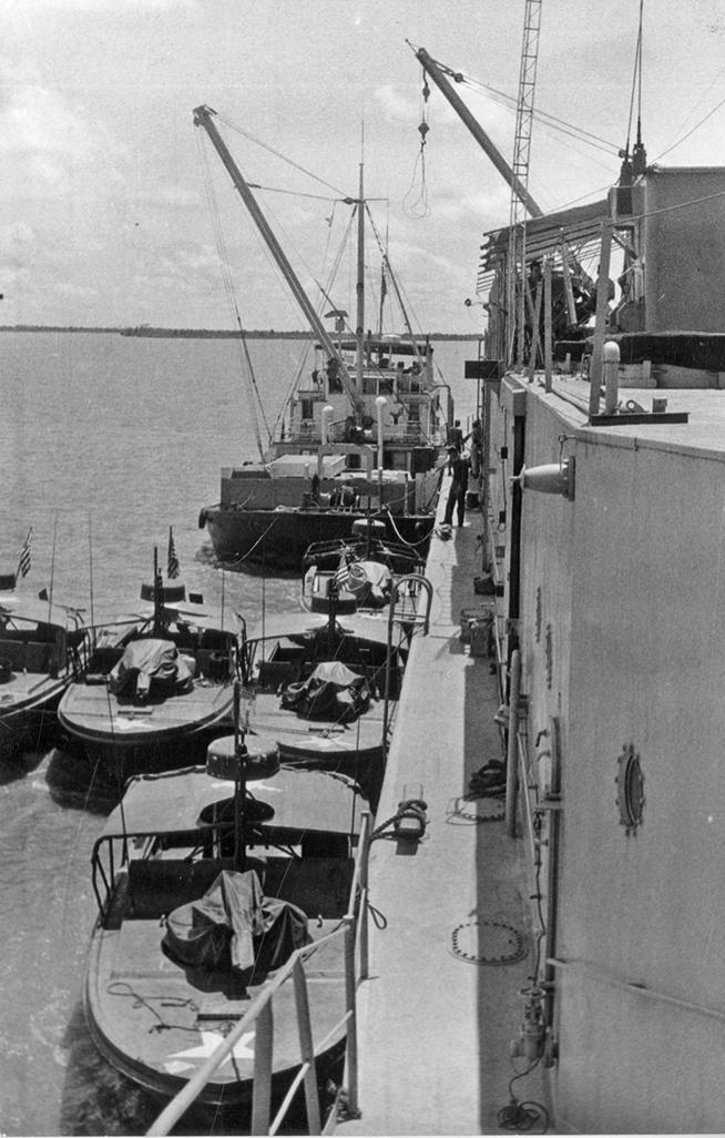 Patrol Boat River's and refrigerator ship Blue Bird alongside the barge at Can Tho