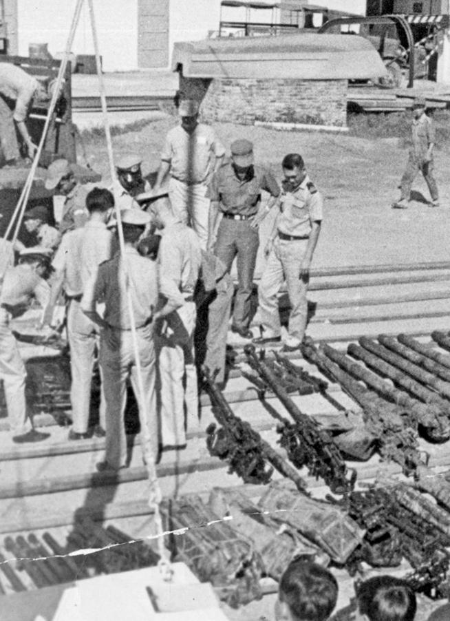 Part of Chinese and Russian weapons from North Vietnamese Trawler captured at mouth of Bassac River