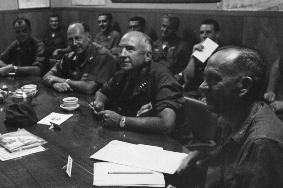 soldiers having a meeting.