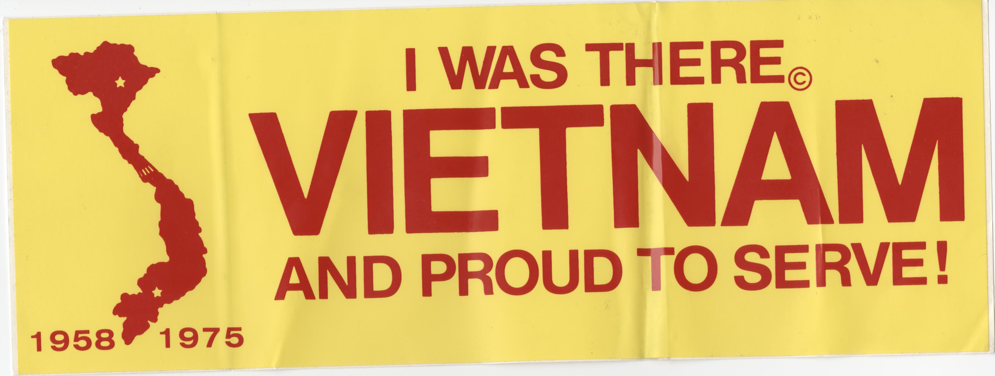 Bumper Sticker: 'Vietnam I was there and proud to serve! 1958-1975'
