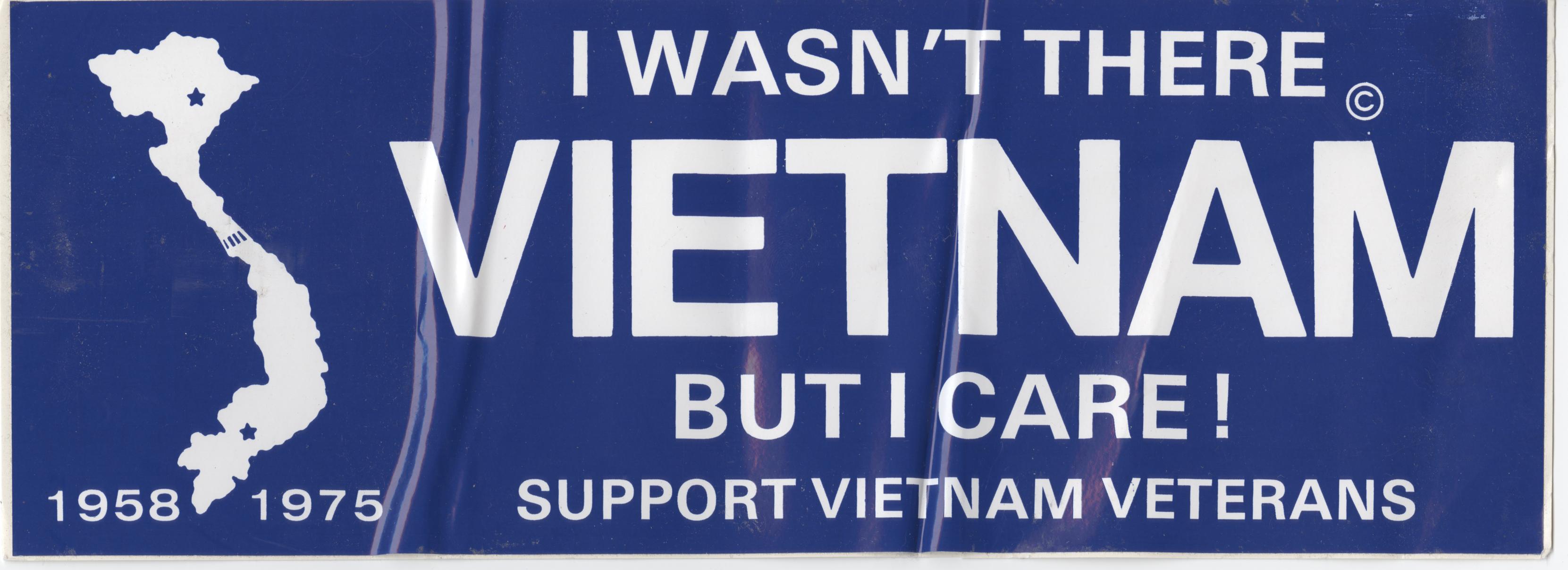 Bumper Sticker: 'Vietnam I wasn't there but I care! Support Vietnam Veterans 1958-1975'