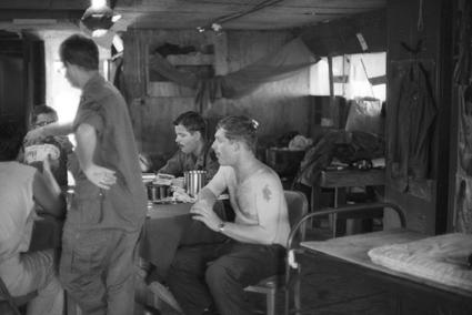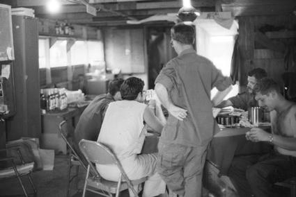 Playing cards inside billet adjacent to Boys Camp deck. Second from right, Dr. Sheldon Nicol