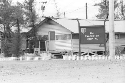 Chapel, Quonset hut wards of 91st Evacuation Hospital in background