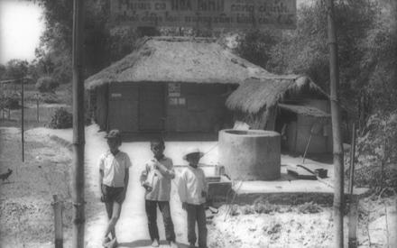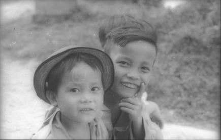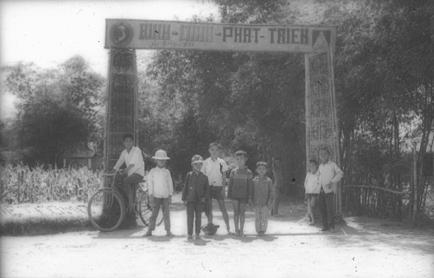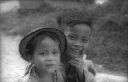 Vietnamese children under gate, 'Binh (illegible) Phat Thieh.'