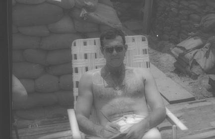 Medic Munson, Company C, 1/77 Armored Battalion, outside 1/77 Armored Battalion Medical Aid Station bunker, Quang Tri Combat Base.