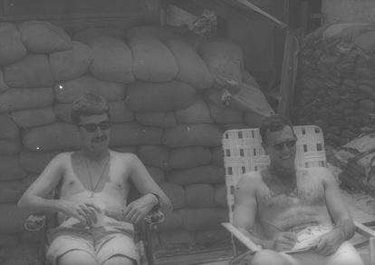 Lt. Paul L. Sauer and Medic Arrington Laughlin, outside 1/77 Battalion Aid Station, Quang Tri Combat Base.