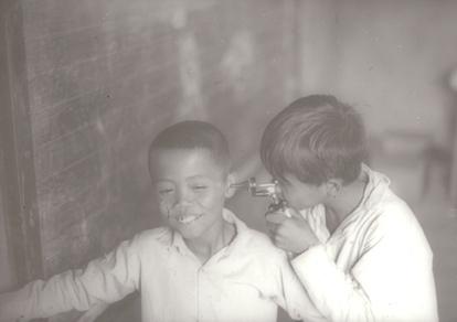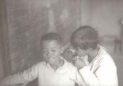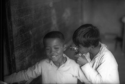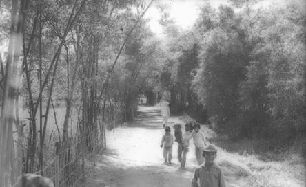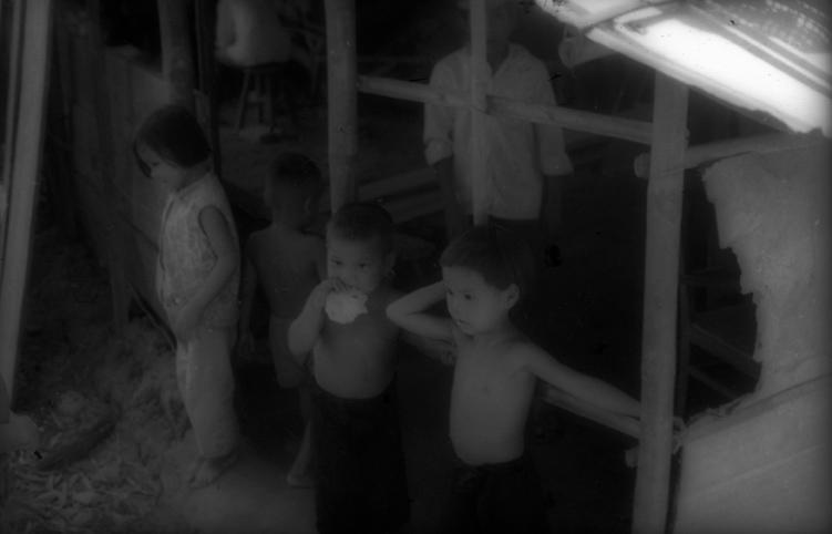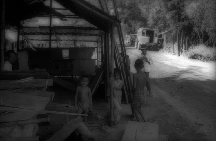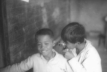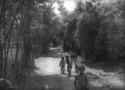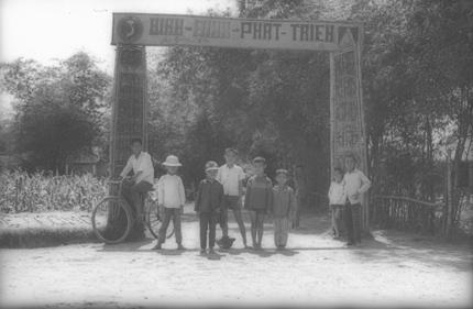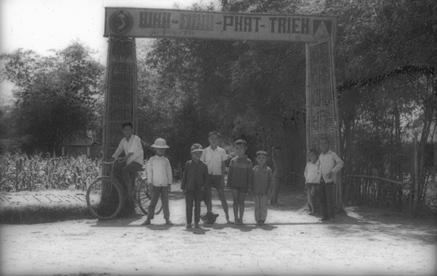 Vietnamese children under gate, 'Binh (illegible) Phat Thieh.'
