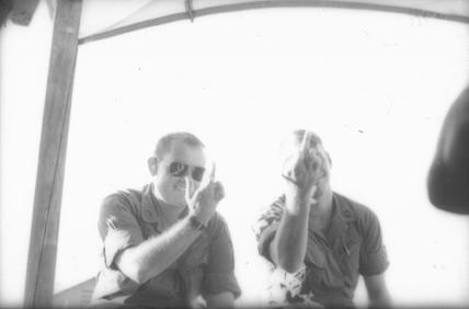 Two officers on deck 1/77 Officers Club. ?Captain Brown on right?
