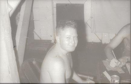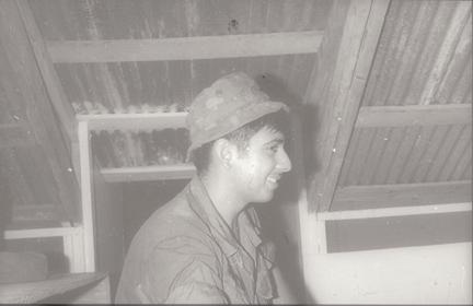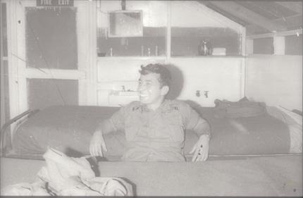 bunker for 1/77 Armored Battalion. Medic Priest seated in chair.