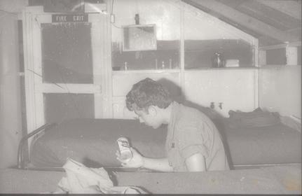 Unknown medic, 1/77 Armored Battalion, 1/5 Infantry (Mechanized) in battalion aid station bunker.