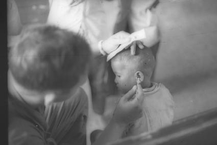 Examining child's ear