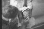 Child looking through window