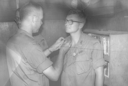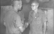 Promotion for unknown officer 1/77, Lt. Col. Baird on right, officer's club 1/77
