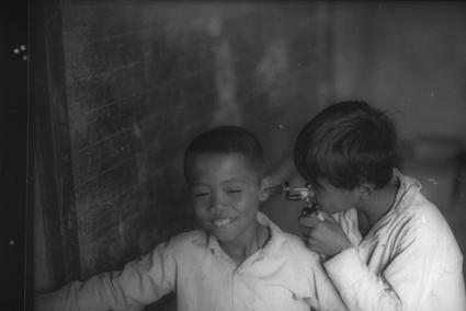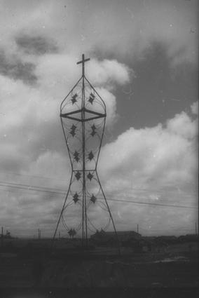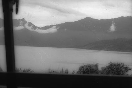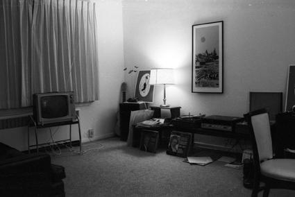 Sandia Army Base BOQ with string of ski passes. Severely underexposed