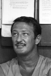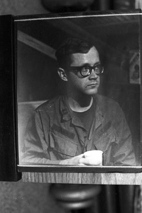 Captain James B. Evans in hootch, 1/77 Armored Battalion, Quang Tri Combat Base. Probably early 1970, during winter monsoon.