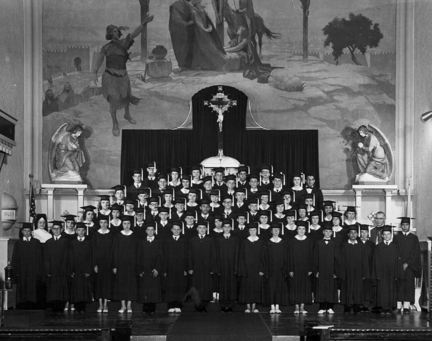 8th grade graduation, Gary Noller 5th row, 4th gr L, Larry Noller, 1st row, center.