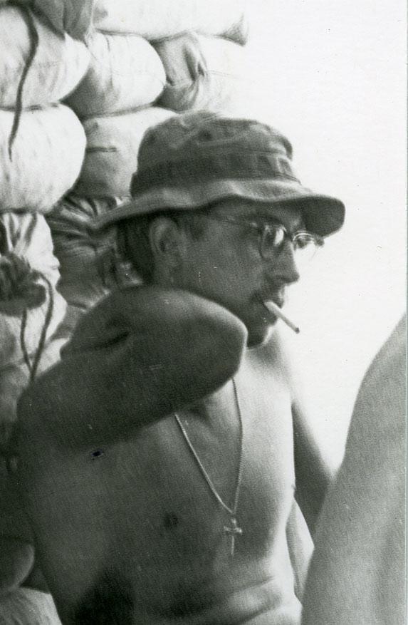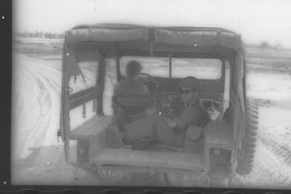 Jeep at Cua Viet, Captain James B. Evans on right.