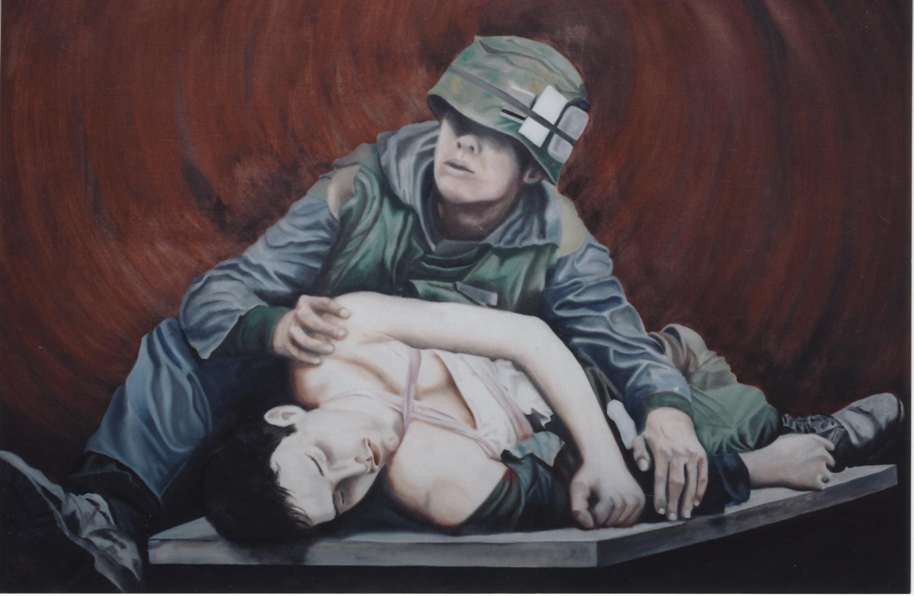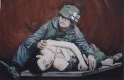 original oil painting by James Evans (circa 1970's) based on photograph in Life magazine. oil painting on gessoed board