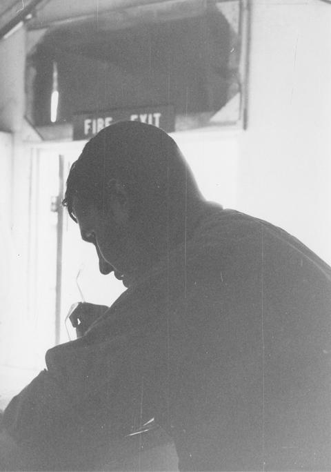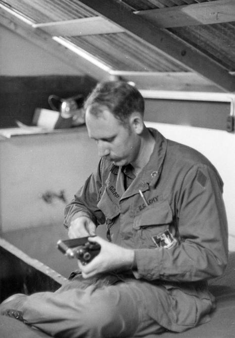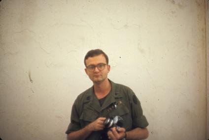 Captain William N. [Bill] Elkins, Jr., physician at 3rd Field Hospital, Saigon. Photograph taken in his billet. Bill Elkins is a long-time friend since we started medical school in 1964. I was best man when he married Jan Barkley, 28 Decemeber 1970