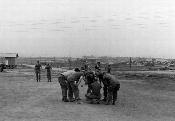 Sports, 1/77 Armored Battalion, between EM barracks on right and officers barracks on left. Two prints exist for this photograph, one stamped 613 and other 750 suggesting this photograph was reprinted. This one stamped 750.