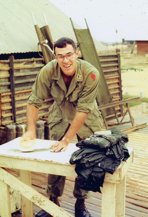 1st Lt. Paul L. Sauer, Army Medical Service Corps, 1/77 Armored Battalion, 1/5 Infantry Brigade [Mechanized] doing laundry outside battalion aid station Quang Tri Combat Base, 1970.
