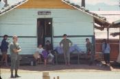 Waiting room Quang Tri Airport, Quang Tri Province, South Vietnam. The exterior and roof of the airport terminal were corrugated metal. The upper walls were open wood louvers.