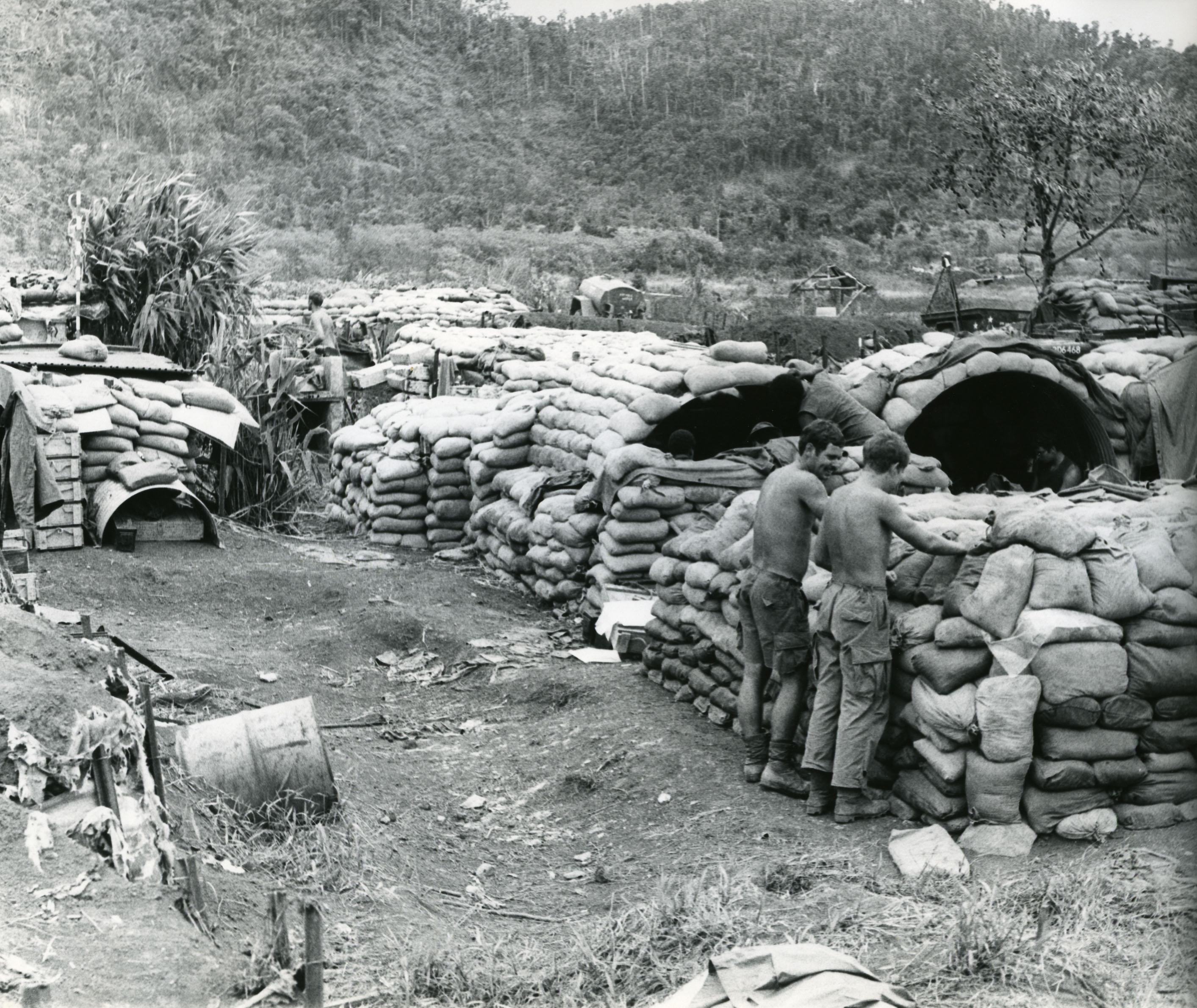 Kham Duc, American flag and bunkers