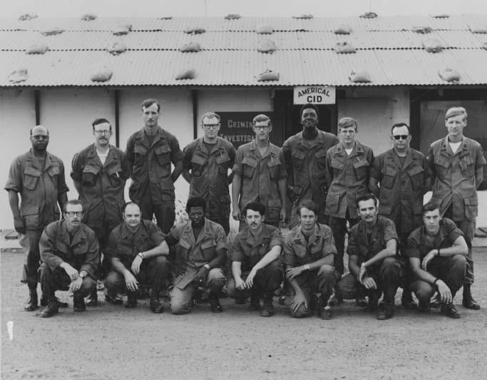 Kneeling: CID Agent James, Mills, PMI Ripley, Young, Cashin, CID Agent Pullen and Unknown Clerk 'Clem' Back: CID Agent Cherry, Voss, PMI Harris, CID Agent Scogin, Skinner, PMI Bond, Unknown PMI, CID Agent Johnson, and PMI Massey