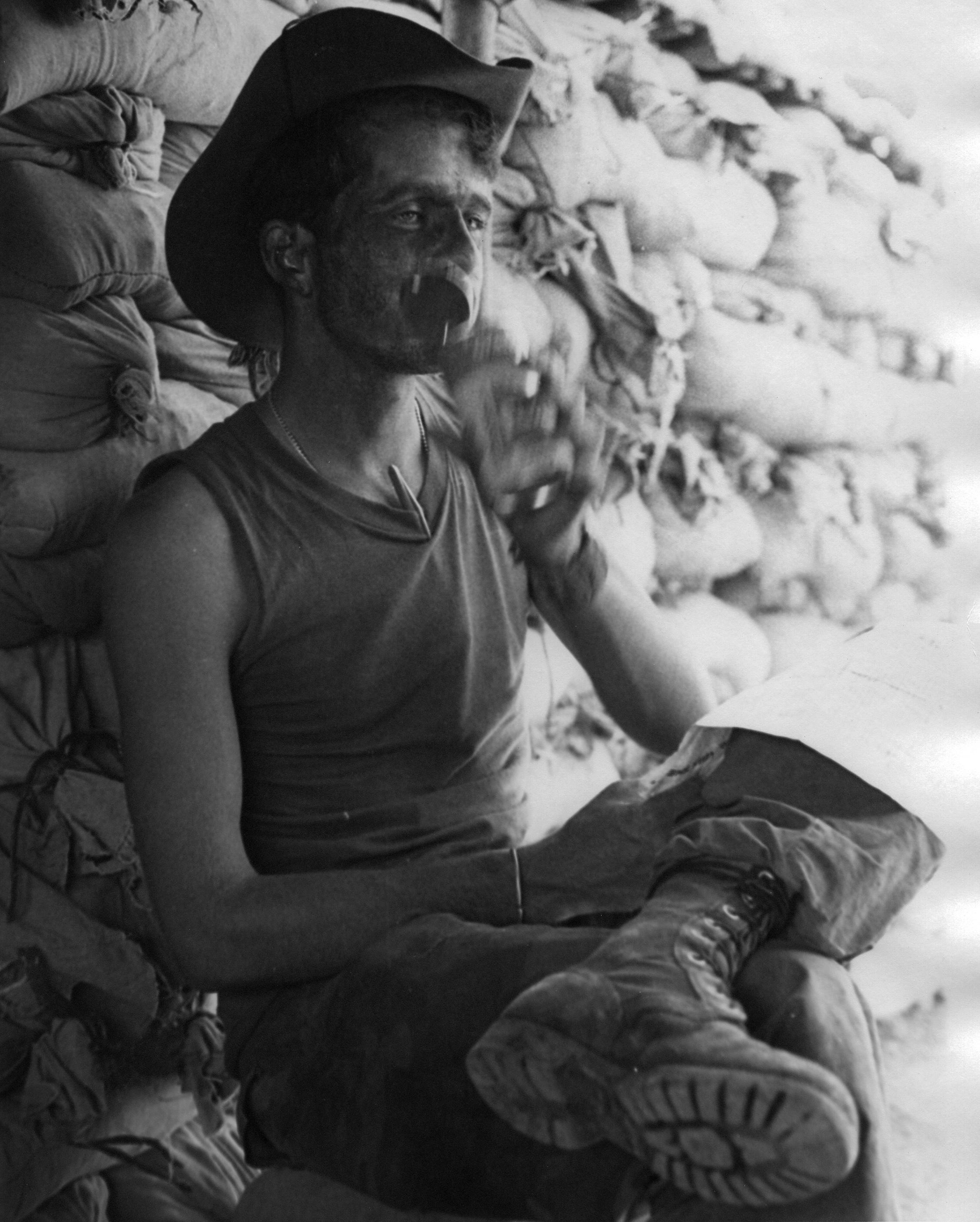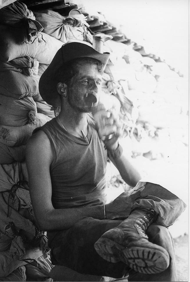 Member of a long range patrol who had just returned from a mission. I was told to provide medical care for the men and not to ask where they had been. Kham Duc was in Viet Nam but within about 10 miles of the border with Laos and Cambodia. My assumption is they had been across the border. His look of fatigue, stress and sadness has been called the thousand yard stare: the piercing glance looking for Charlie in the jungle or looking into eternity.