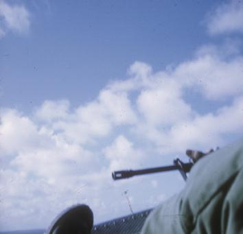 Aerial Views Cua Viet and flight along Quang Tri River to Mai Loc Aerial views from helicopter during flight with 1/77 Armored Battalion commander, Lt. Col. Miller. Mai Loc was a Special Forces and Montagnard Camp in the mountains in western Quang Tri Province. Mai Loc was located in a very greeny valley surrounded by concertina and mine fields. I was acutely aware during this flight that I had no jungle survival training, no concept of where we were flying and no idea how to attempt to survive if we crashed in these mountains. The Army provided no jungle survival training for physicians; during this period the Army's intention was dumping as many physicians into Vietnam as quickly as possible. The Army in its infinite stupidity assumed we could practice medicine anywhere but had no concern about providing jungle survival skills or what to do if the helicopter crashed, a relatively common occurrence. Door gunner on helicopter gunship