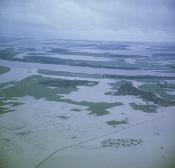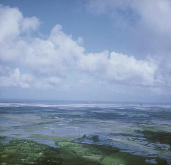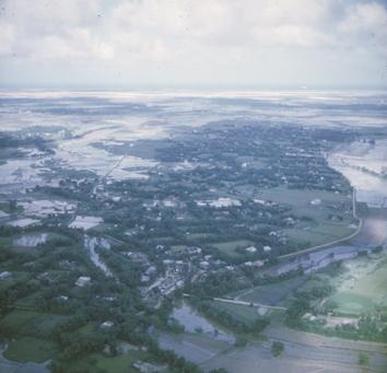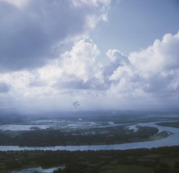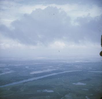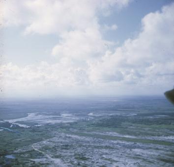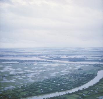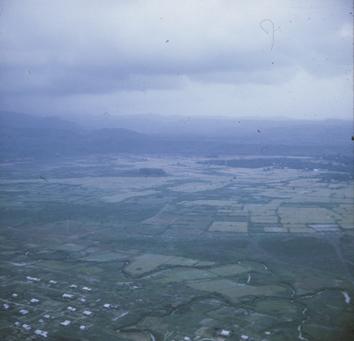 Aerial Views Cua Viet and flight along Quang Tri River to Mai Loc Aerial views from helicopter during flight with 1/77 Armored Battalion commander, Lt. Col. Miller. Mai Loc was a Special Forces and Montagnard Camp in the mountains in western Quang Tri Province. Mai Loc was located in a very greeny valley surrounded by concertina and mine fields. I was acutely aware during this flight that I had no jungle survival training, no concept of where we were flying and no idea how to attempt to survive if we crashed in these mountains. The Army provided no jungle survival training for physicians; during this period the Army's intention was dumping as many physicians into Vietnam as quickly as possible. The Army in its infinite stupidity assumed we could practice medicine anywhere but had no concern about providing jungle survival skills or what to do if the helicopter crashed, a relatively common occurrence. Aerial View flooded fields, Quang Tri Province