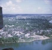 Aerial Views Cua Viet and flight along Quang Tri River to Mai Loc Aerial views from helicopter during flight with 1/77 Armored Battalion commander, Lt. Col. Miller. Mai Loc was a Special Forces and Montagnard Camp in the mountains in western Quang Tri Province. Mai Loc was located in a very greeny valley surrounded by concertina and mine fields. I was acutely aware during this flight that I had no jungle survival training, no concept of where we were flying and no idea how to attempt to survive if we crashed in these mountains. The Army provided no jungle survival training for physicians; during this period the Army's intention was dumping as many physicians into Vietnam as quickly as possible. The Army in its infinite stupidity assumed we could practice medicine anywhere but had no concern about providing jungle survival skills or what to do if the helicopter crashed, a relatively common occurrence. Aerial view Dong Ha, Quang Tri Province