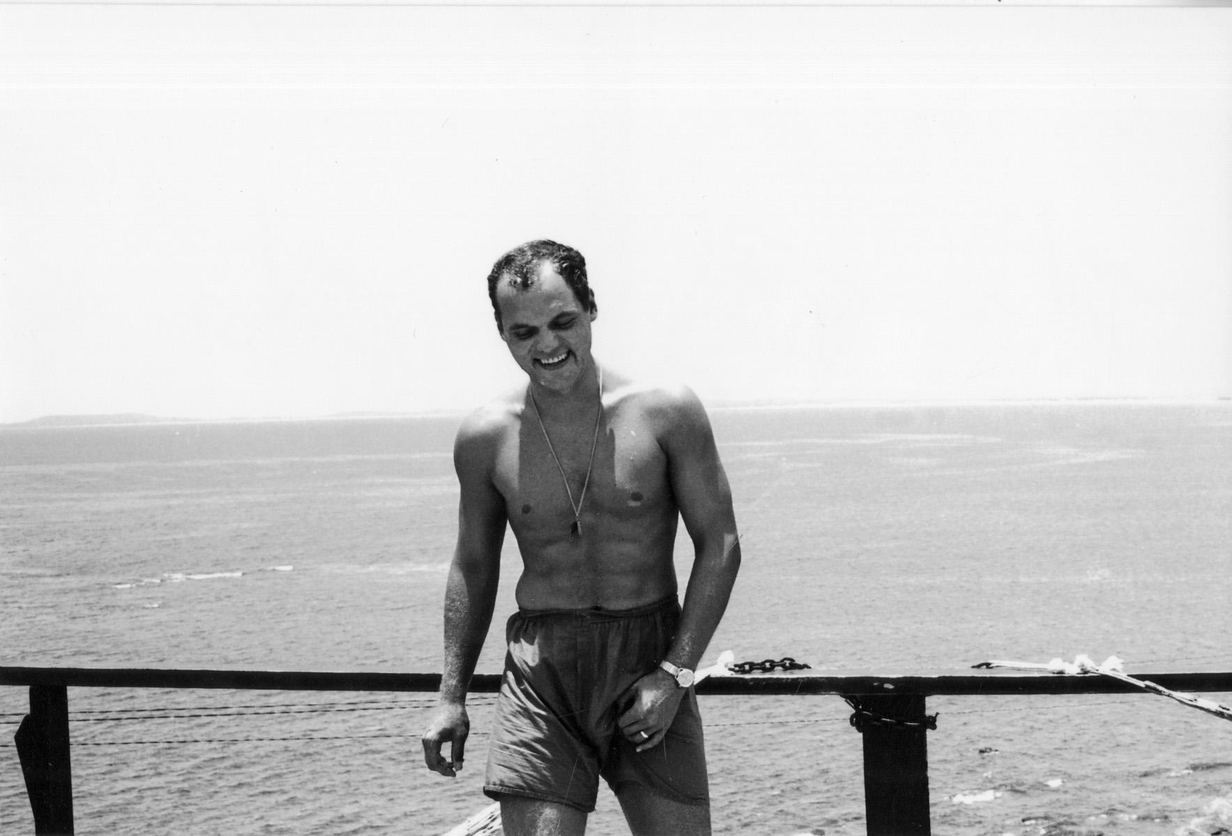 Dr. Sully Sullivan, physician at 91st Evacuation Hospital, Chu Lai, Vietnam. Location: Boys Camp Deck.