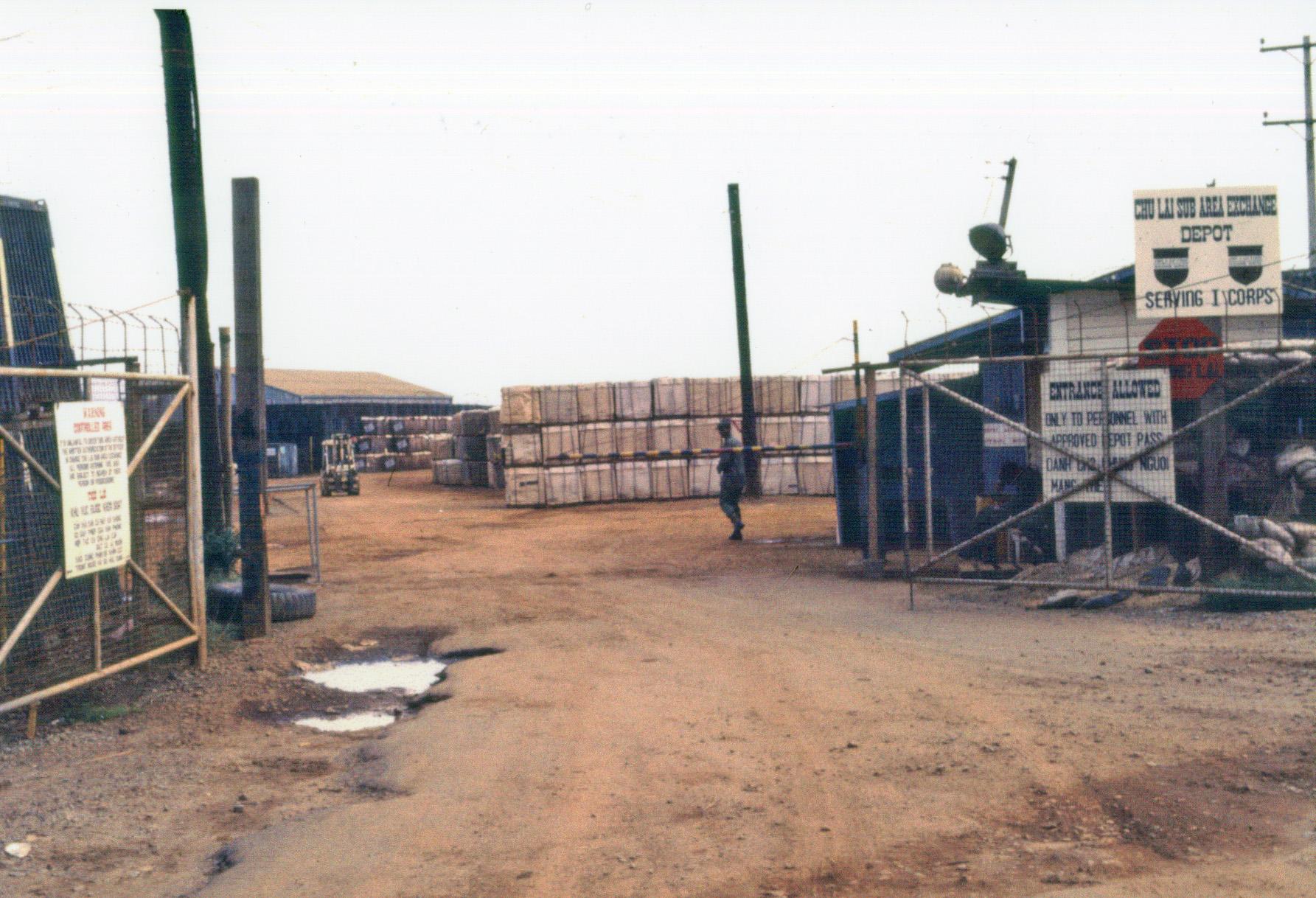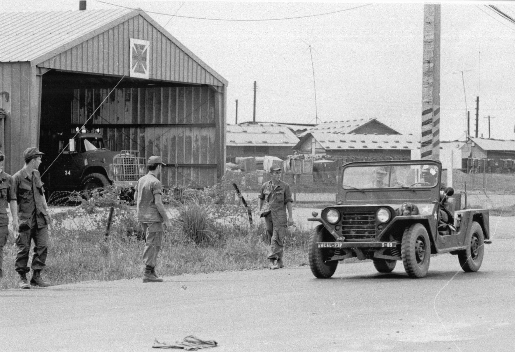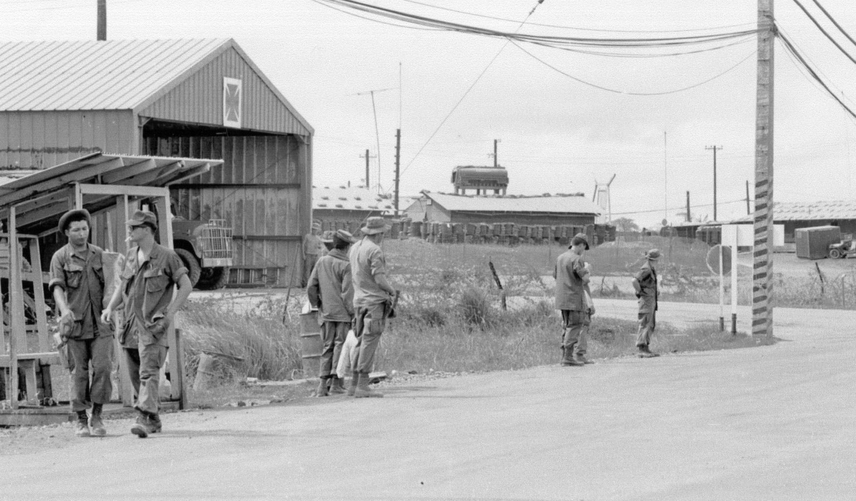 Chu Lai Fire Station. Soldiers by road near Chu Lai PX, 1970.