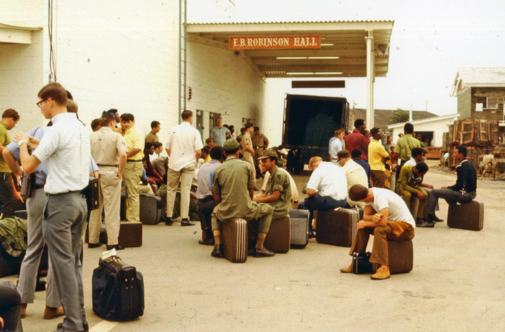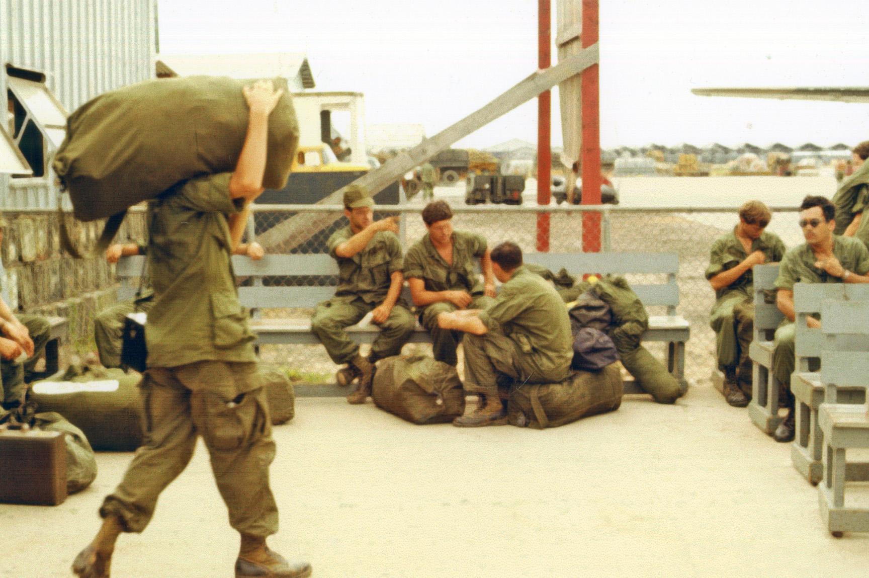 Waiting at Robinson Hall, Camp Alpha, Saigon en route to second R&R in Hong Kong, September 1970.