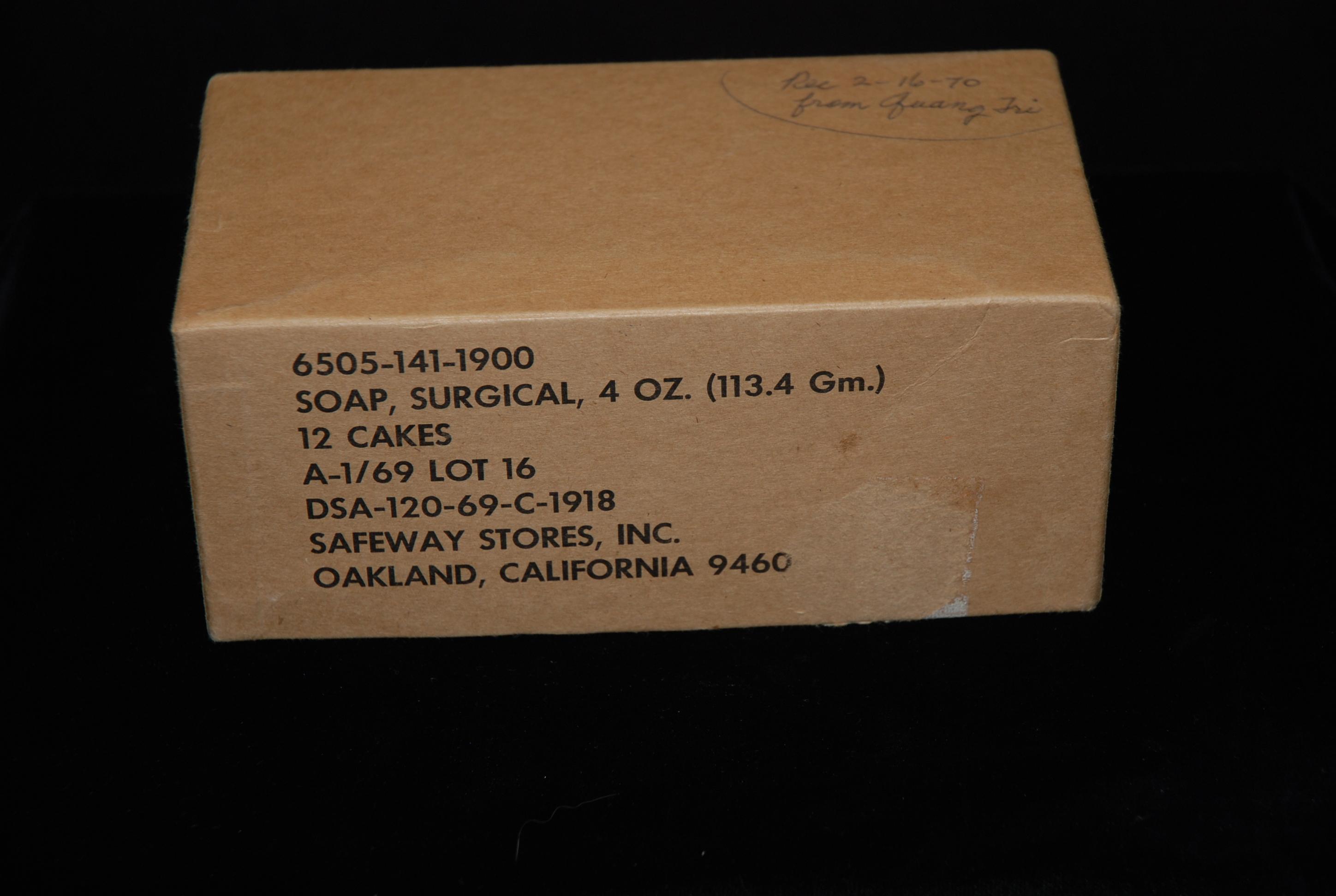 Surgical bar soap box from the 1st Battalion , 77th Armor, 1st Brigade, 5th Infantry Division Battalion Aid Station at Quang Tri Combat Base