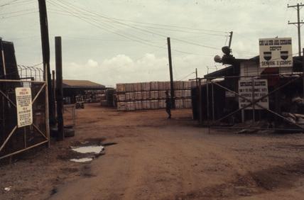 Pallets of soda and beer adjacent to PX, Chu Lai, Vietnam