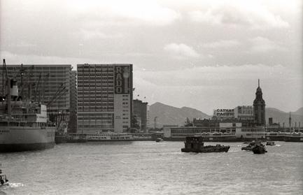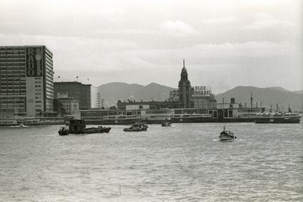 View from Star Ferry before landing on VIctoria Island. Building in center, Hong Kong Post Office.