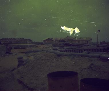 Quang Tri Province, unknown location, possibly Cua Viet. Large development artifact or scratch in emulsion over sky