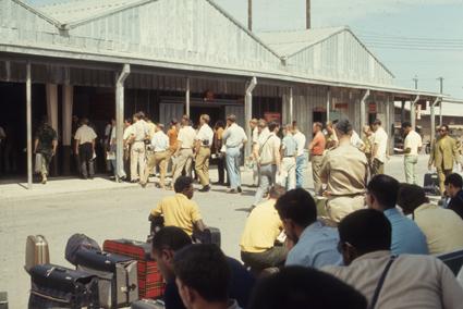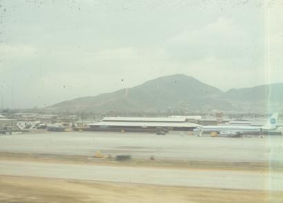 Standing in line for R&R processing, DaNang. At least we were out of those damn green fatigues!